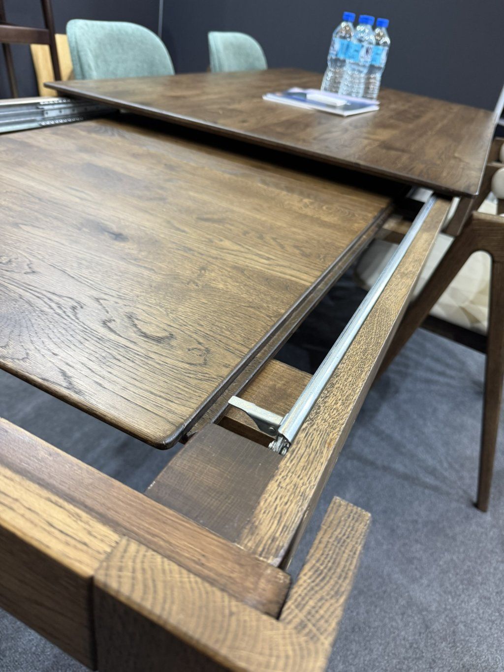Masivní dubový rozkládací jídelní stůl Denis 180–250 cm nabízí prostor pro 6–10 osob, vysokou stabilitu a nadčasový design. Ideální pro každodenní použití i větší setkání.