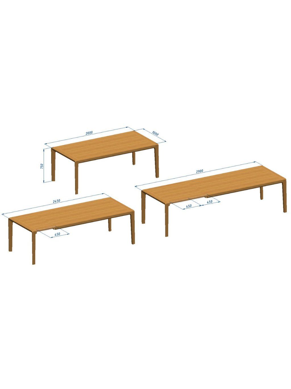 V základním rozměru 200 × 100 cm poskytuje komfortní prostor pro každodenní stolování. Pokud však potřebujete více místa, lze stůl jednoduše rozšířit pomocí dvou přídavných desek o délce +45 cm. Výsledkem je flexibilní jídelní stůl o délce 245 cm nebo až 290 cm, který pohodlně usadí větší rodinu i početnou návštěvu.